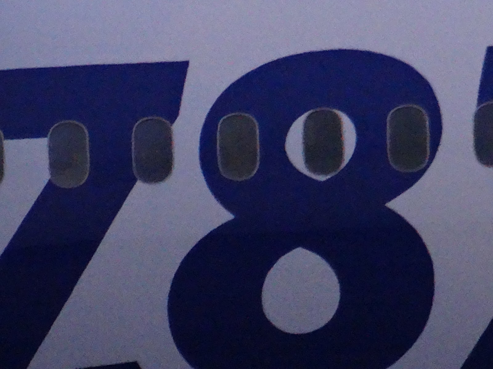 HX200VにオリンパスのTCON-17Xを装着して試し撮りです。夜7時10分到着のボーイング787です。薄暗い時間帯ですが、手持ち(三脚なし)で撮影してみました。COOLPIX P510での撮影(P510試し撮り)とほぼ同条件ですが、こちらのほうが時間が30分ほど早い(明るい)です。